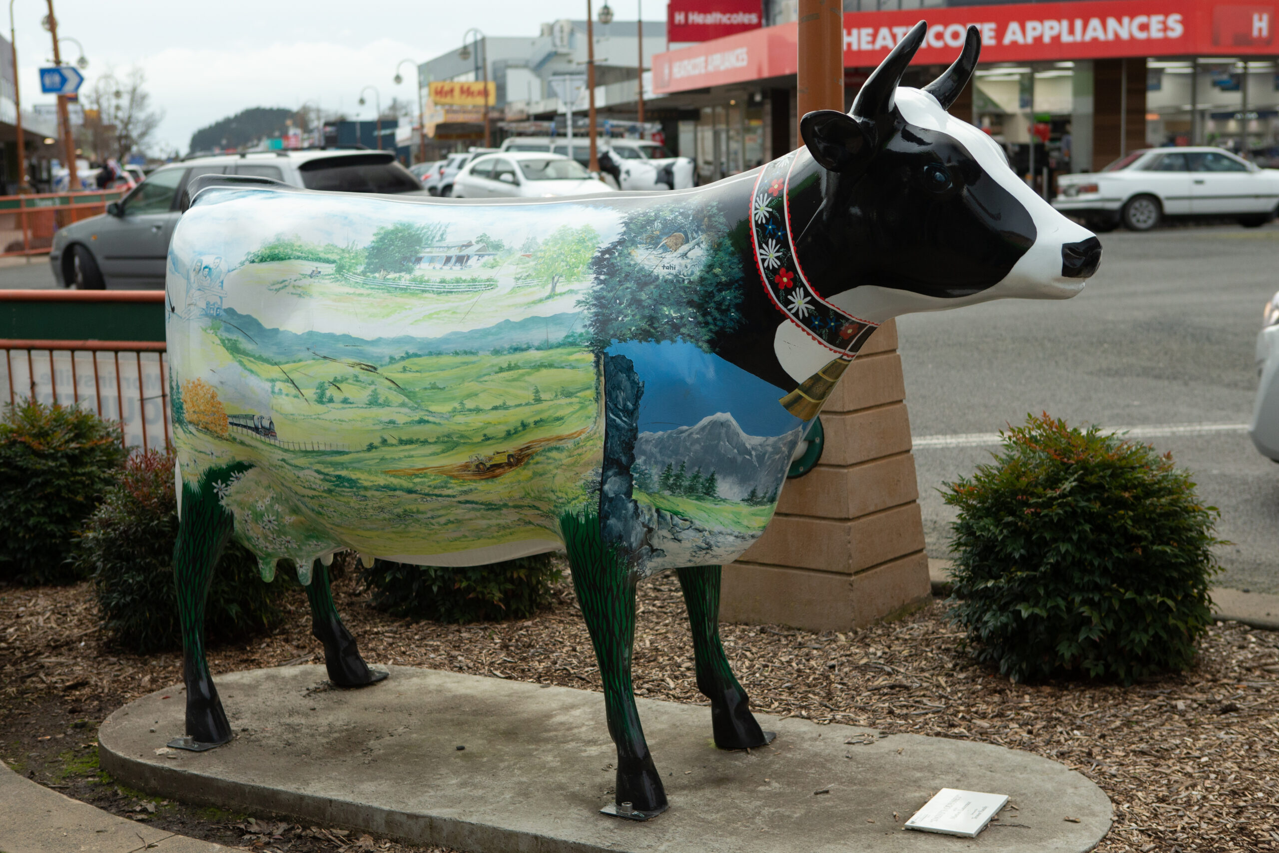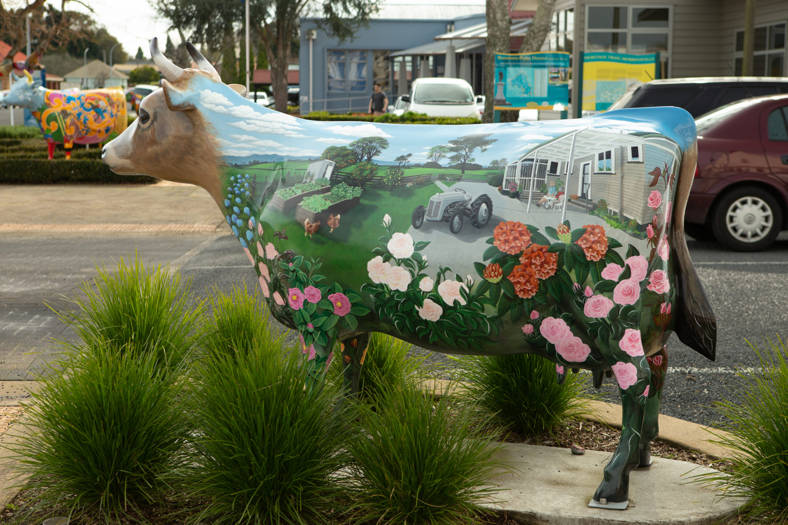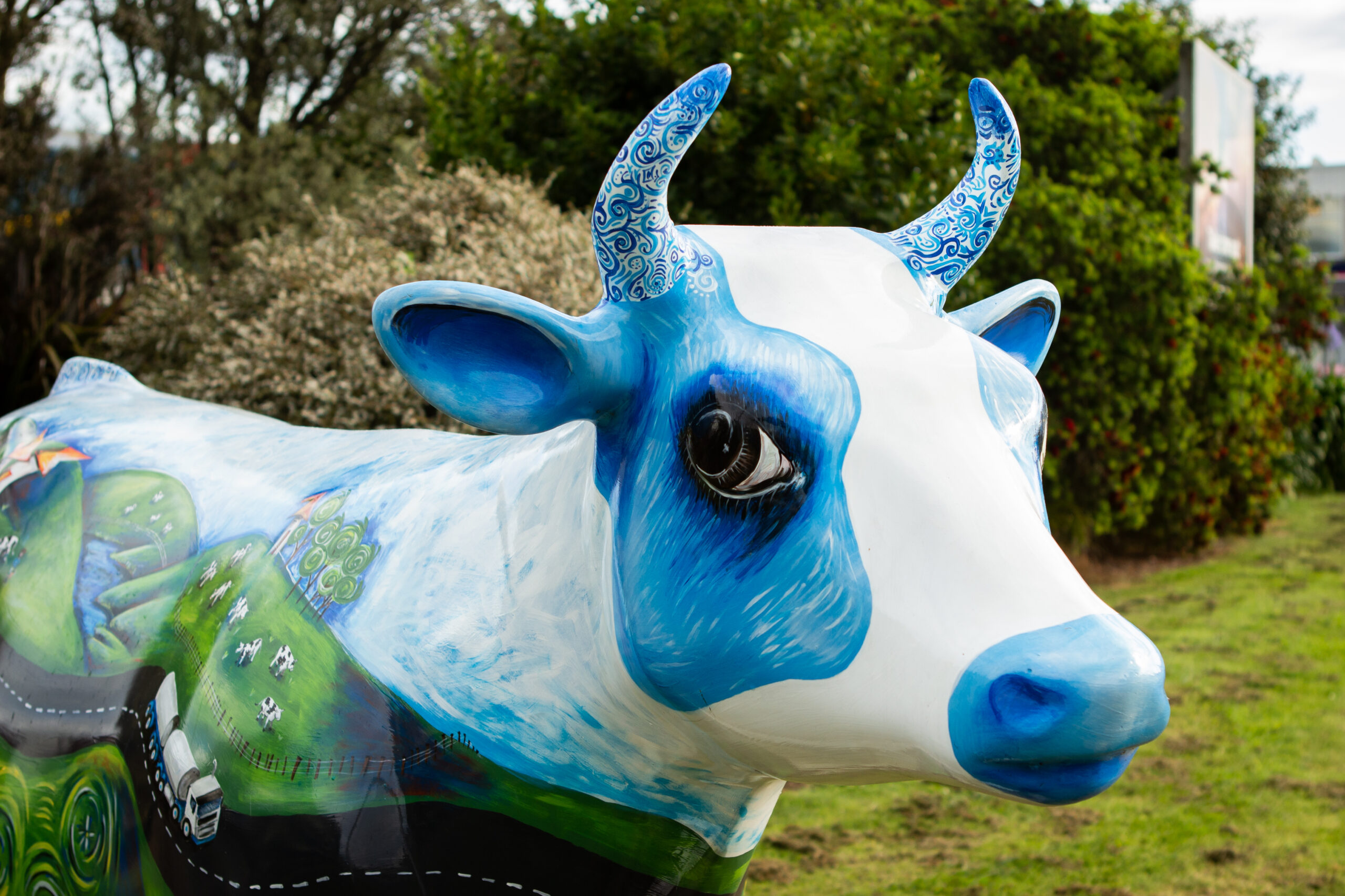 Freedom was the first cow to join the herd, and is the first destination on the Morrinsville Herd of Cows Trail Map. She was originally designed and beautifully painted by artist, Christine Melchior in 2015, representing CooperAitken’s brand and values. After many years of love and admiration, Freedom needed a re-paint and so came a whole new re-design in 2024. We were thrilled when artist Vicki Carruthers took on the project, beautifully reimagining Freedom to reflect the spirit of Morrinsville and everything that makes our community special.