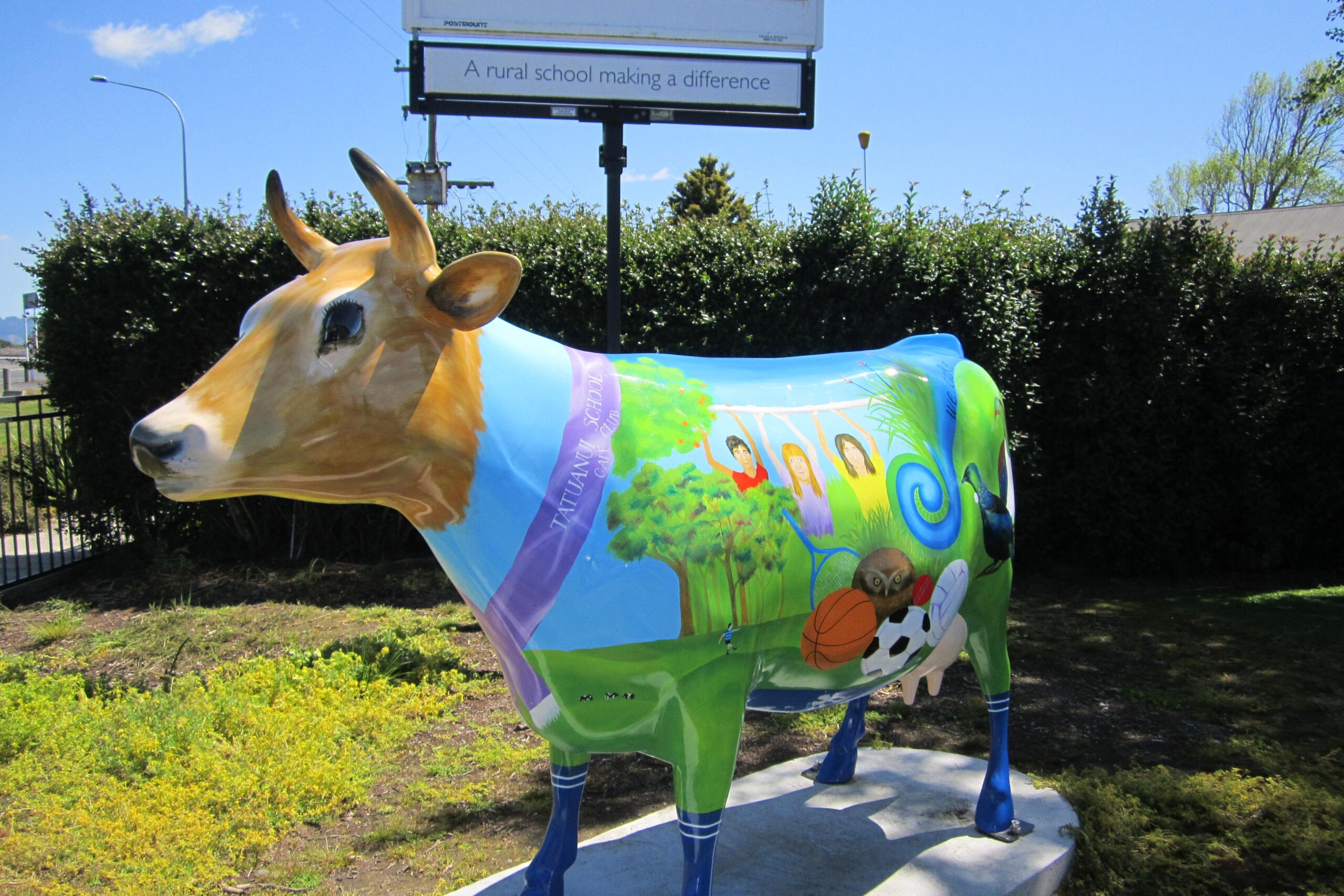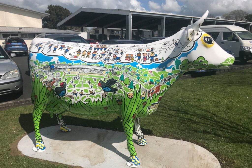 We are proud owners of three of these cows; Freedom, the first cow in the herd who resides outside the Morrinsville iSite Centre. Spirit, our beautiful white and blue cow who keeps us company outside our Morrinsville office. Our newest cow, MIS Jubliee, who we co-sponsored with Morrinsville Intermediate School to represent their 50th year in the school’s history, and lives near their front gates on Coronation Road.